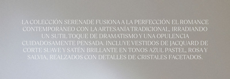 Celebrando el drama sutil y la opulencia intencionada, la Colección Serenade es una lección magistral de romance moderno: una curaduría elegante de feminidad y artesanía tradicional.