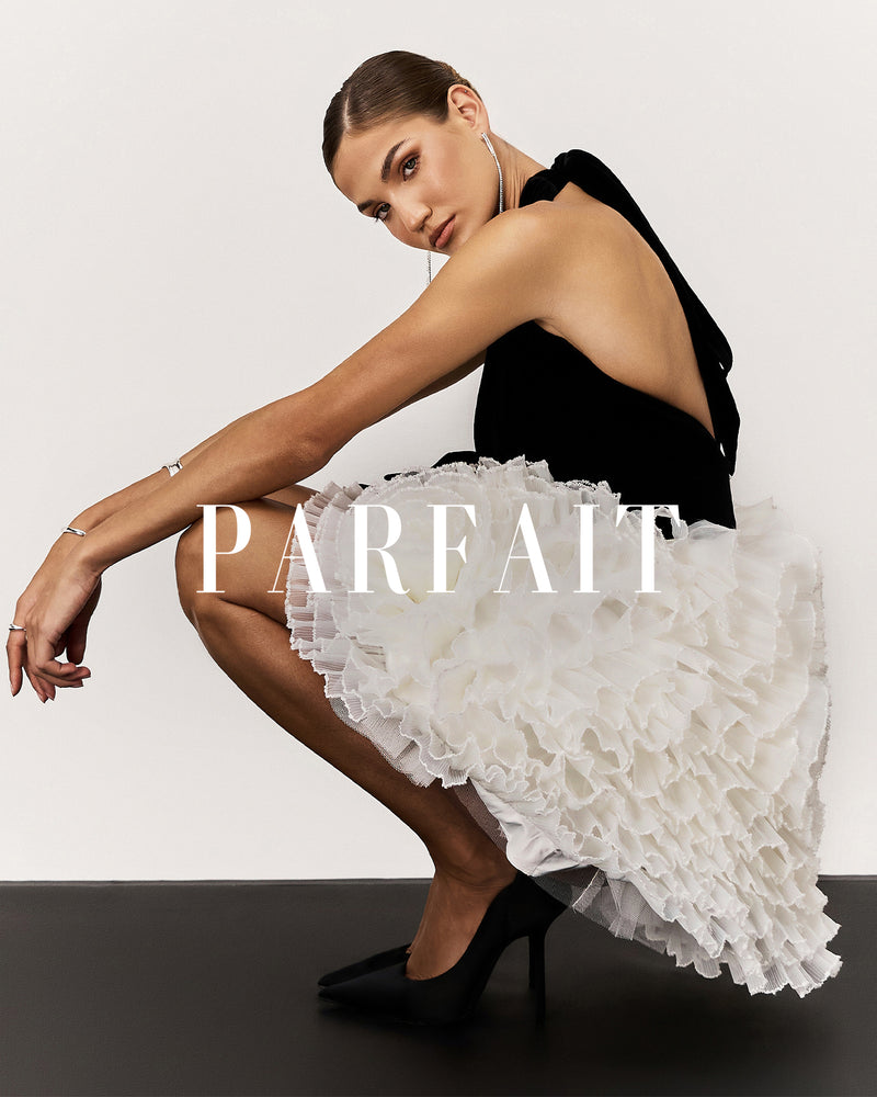 Parfait is an elegant symphony of volume, light and fantasy. Crafted in luxury fabrics, it features sculpted hourglass maxi dresses, bold shoulder detailing and feathered trims for dramatic impact. Designed for life’s standout moments, Parfait is occasion wear elevated.