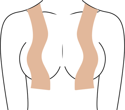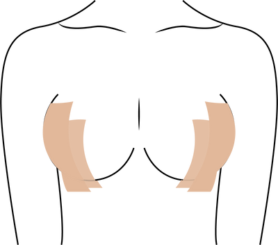 Lift and hold the breast in position, then remove the tape's backing paper and firmly smooth it onto your own skin whilst rubbing and pressing down.