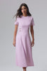 Graceful yet striking, So Sweet is a seamless blend of poised femininity and chic style. Cut from our premium crepe in a delicate pink hue, this midi silhouette flatters with effortless elegance. The crew neckline offers a clean, modern finish, while hand-cut embroidered detailing along the sleeves and sides of the waist adds depth and ethereal charm. A full A-line skirt flows with soft volume, adding a hint of romance. The perfect piece for occasions that call for understated beauty and refined detail.